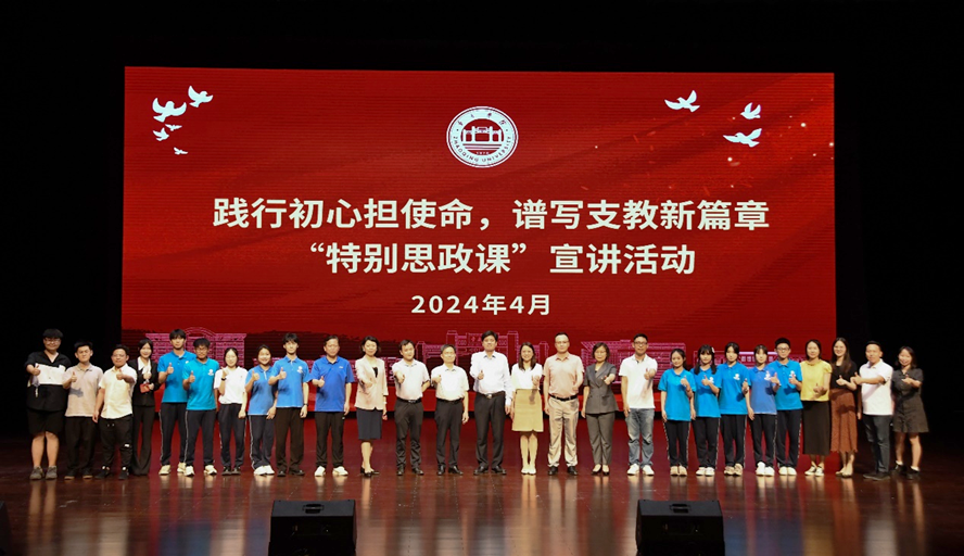 本网讯 4月24日,公司在艺术中心开展以“践行初心担使命,谱写支教新篇章”为主题的“特别思政课”宣讲活动,引导和鼓励青年老员工为祖国奉献青春、建功立业,培育和践行社会主义核心价值观。